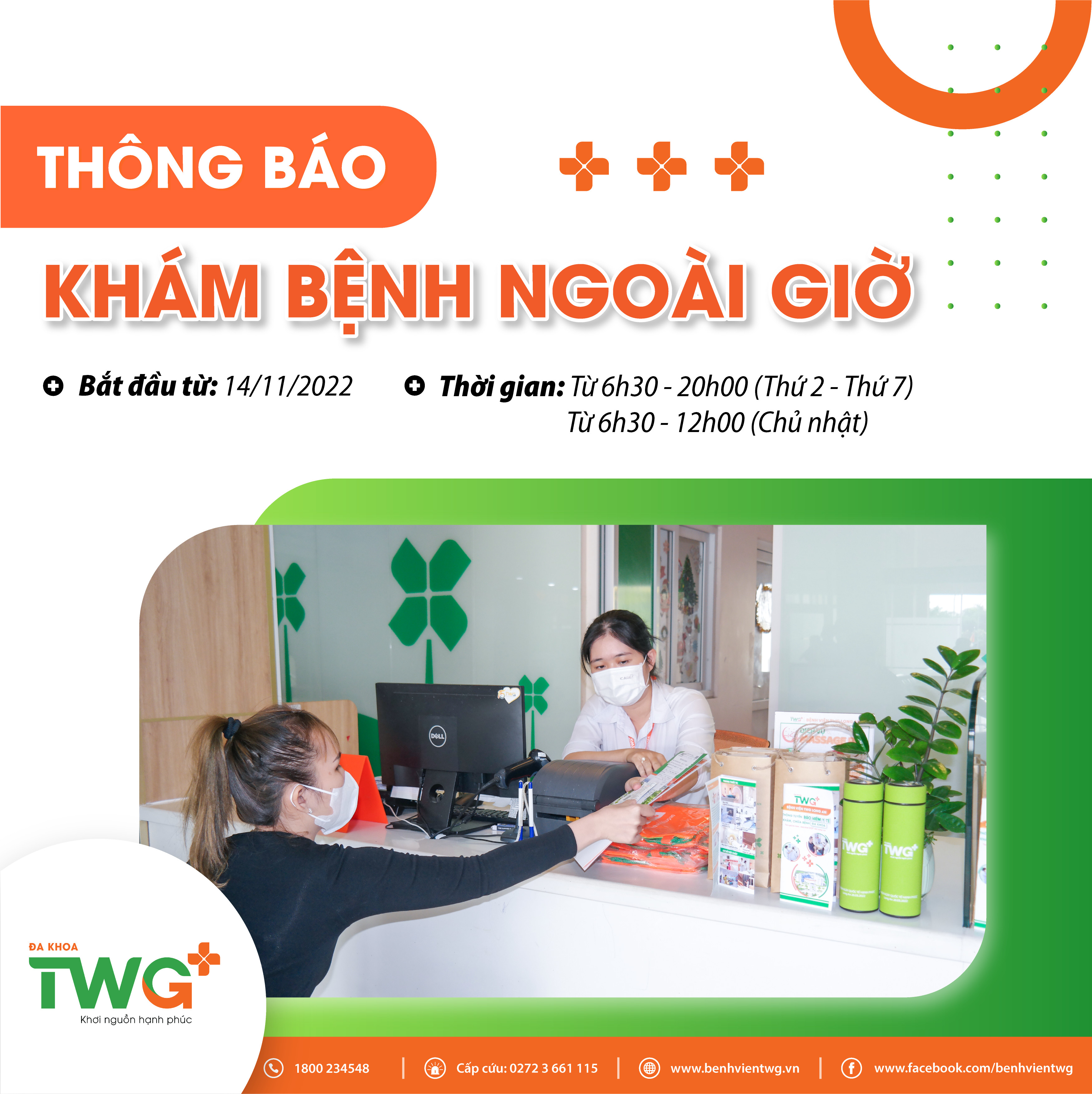 Nhằm tạo thuận lợi cho người dân đăng ký khám chữa bệnh, Bệnh viện TWG Long An thông báo THAY ĐỔI THỜI GIAN TIẾP NHẬN KHÁM CHỮA BỆNH kể từ ngày 14/11/2022